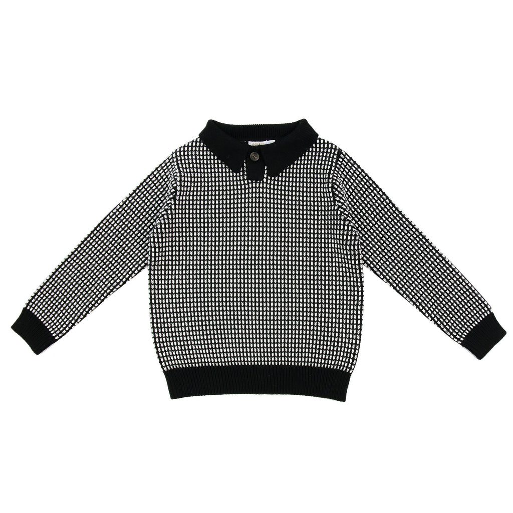 Coco Blanc Boys Collared Sweater Black/White