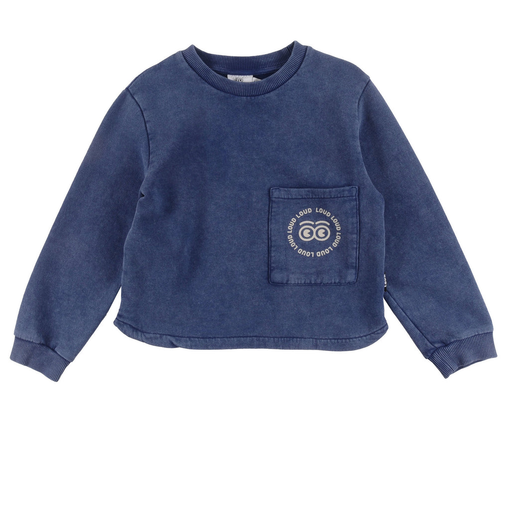 Loud Apparel Brother Sweater Front Pocket Blue Depth Marble Dye