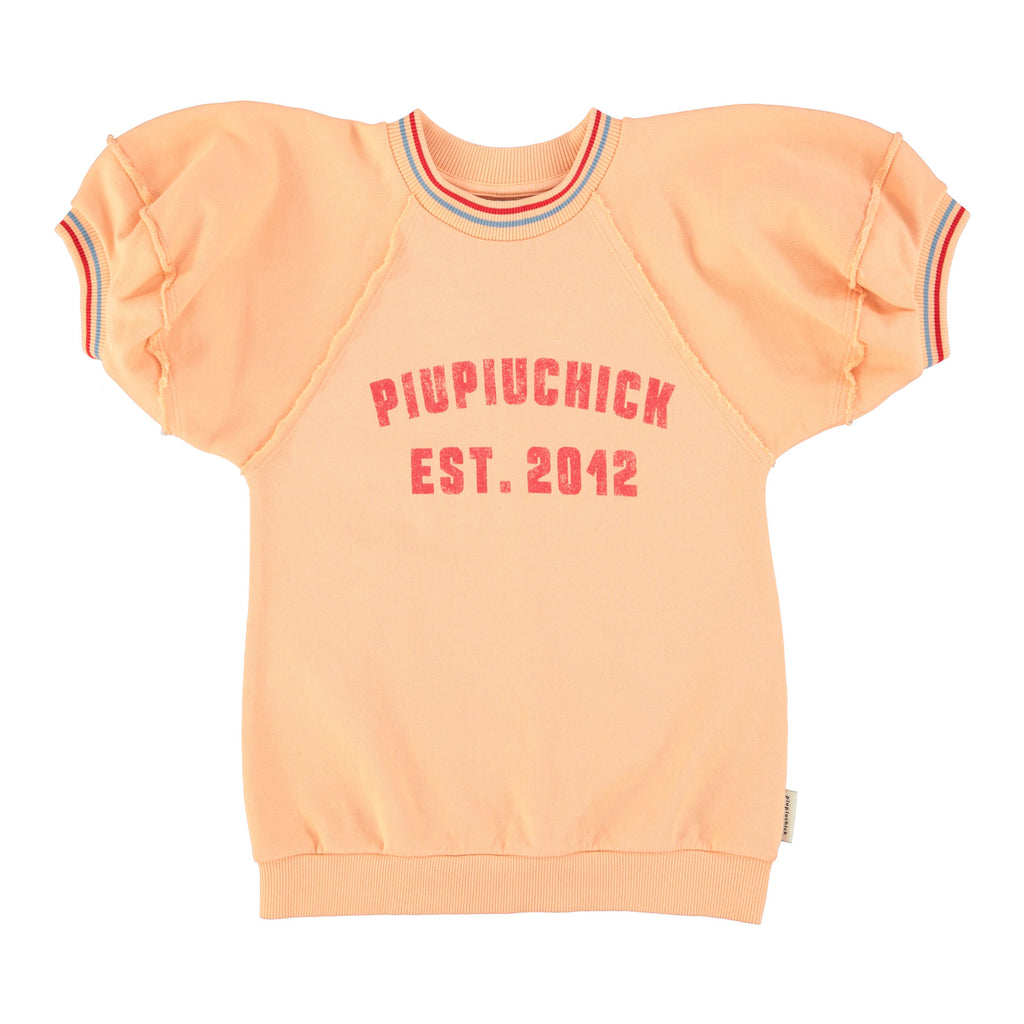Sweat Dress With Knee-Lenght Ballon Sleeves In Organic Cotton Fleece. Ribbed Hems. Frontal Print And A Little Red Logo Star At Back. Seam Details.