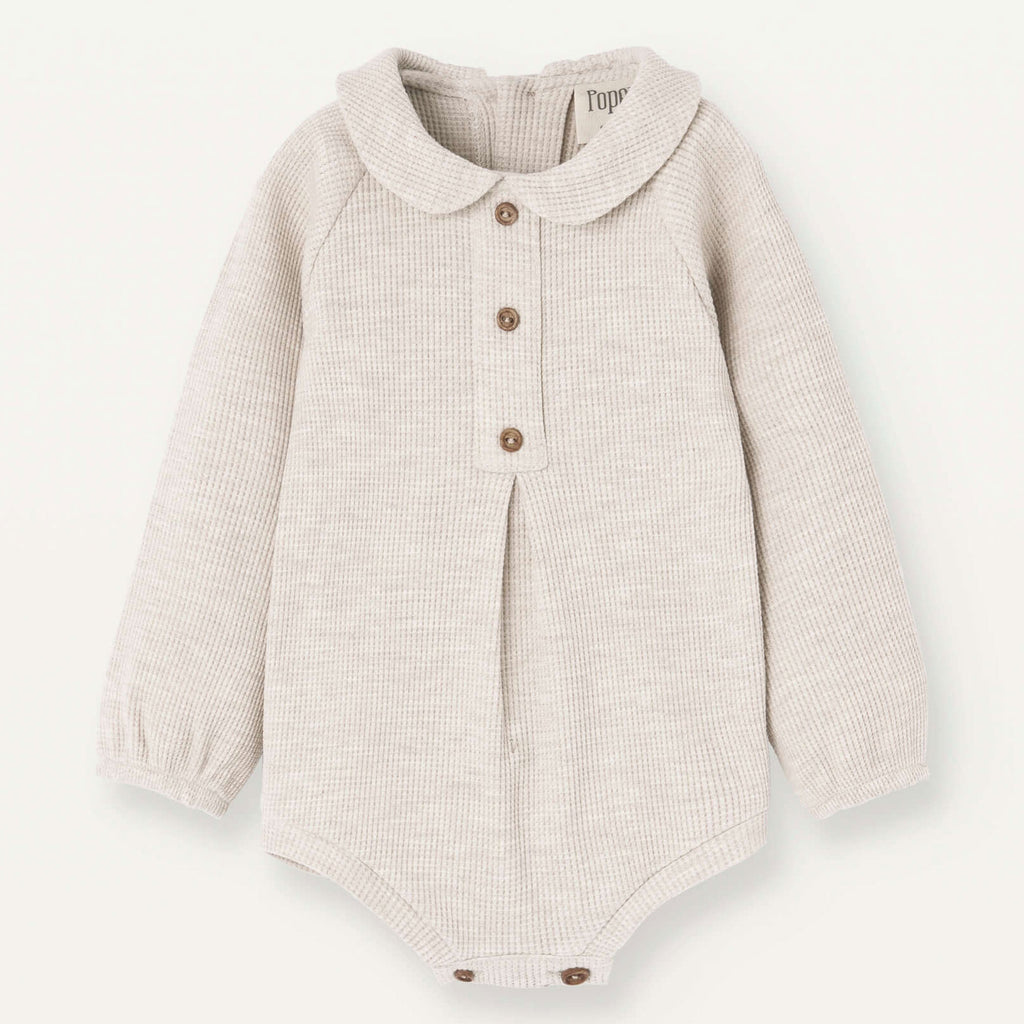 Popelin Stone Waffle Knit Romper Suit With Baby Collar